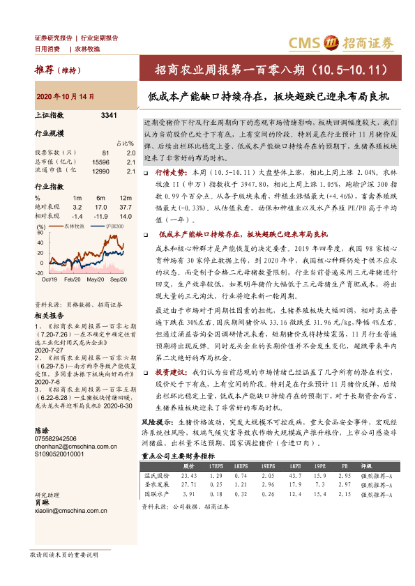 【海通证券】【20201014】招商农业周报第一百零八期:低成本产能缺口持续存在,板块超跌已迎来布局良机-25页