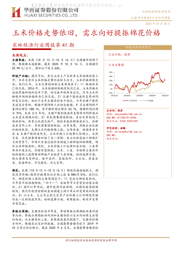 【华西证券】【20201018】20201018-华西证券-农林牧渔行业周报第41期:玉米价格走势依旧,需求向好提振棉花价格-21页