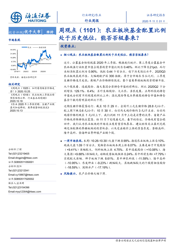 【海通证券】【20201101】20201101-海通证券-农业周观点:农业板块基金配置比例处于历史低位,能否否极泰来?-5页