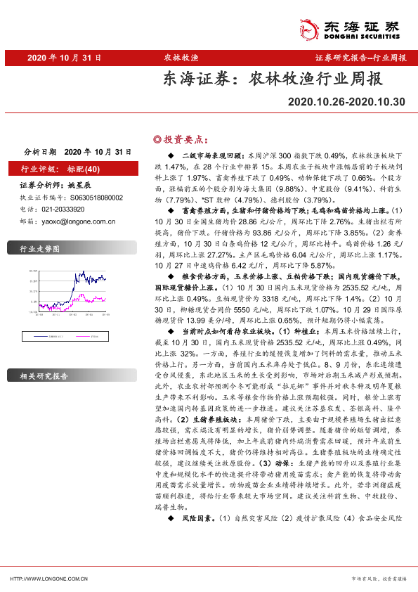 【东海证券】【20201031】20201031-东海证券-农林牧渔行业周报-10页