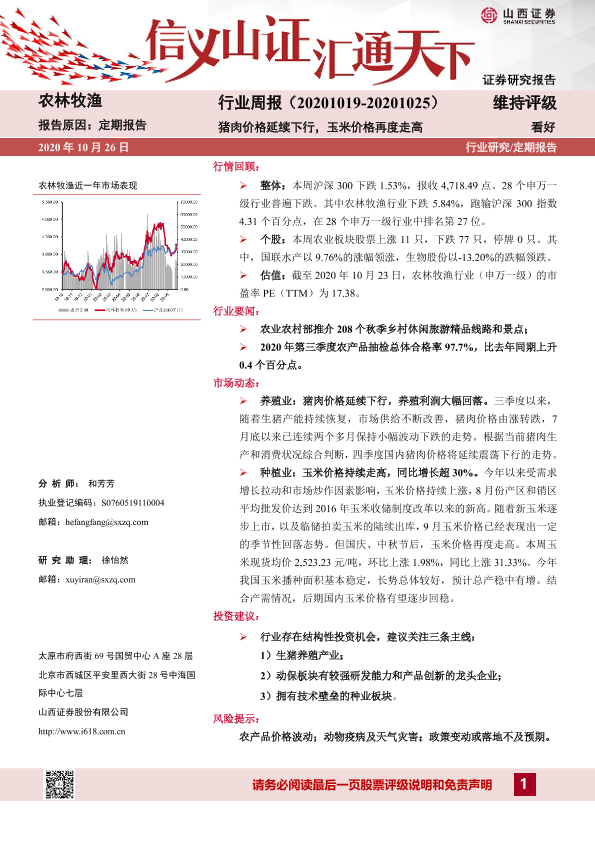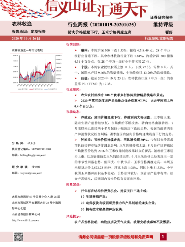 【山西证券】【20201026】20201026-山西证券-农林牧渔行业周报:猪肉价格延续下行,玉米价格再度走高-13页