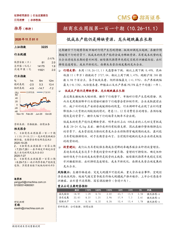 【海通证券】【20201101】招商农业周报第一百一十期:低成本产能仍是稀缺资源,龙头超跌赢在长期-25页