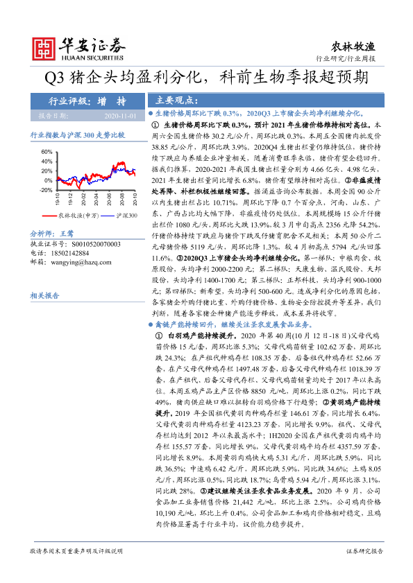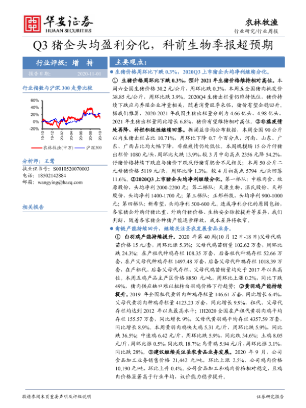 【华安证券】【20201101】20201101-华安证券-农林牧渔行业周报:Q3猪企头均盈利分化,科前生物季报超预期-32页