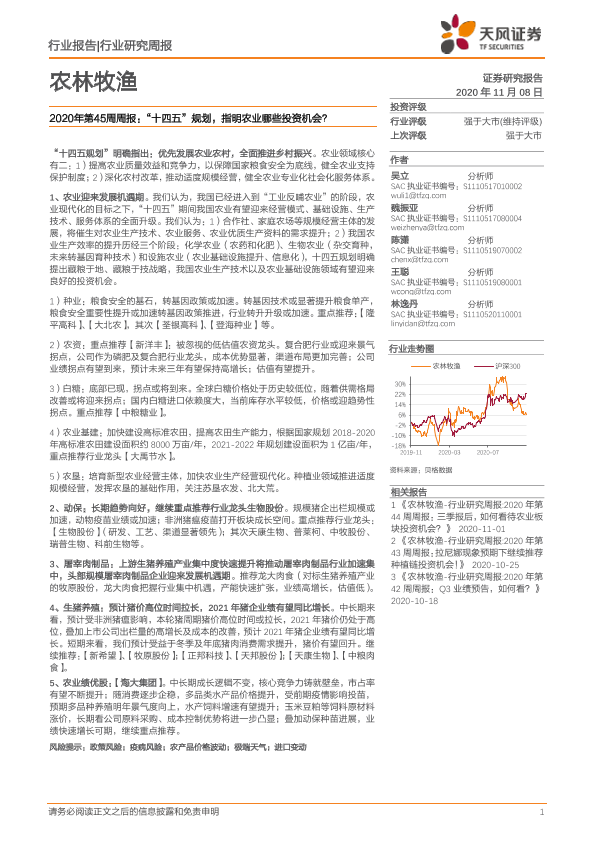【天风证券】【20201108】20201108-天风证券-农林牧渔2020年第45周周报:“十四五”规划,指明农业哪些投资机会?-15页