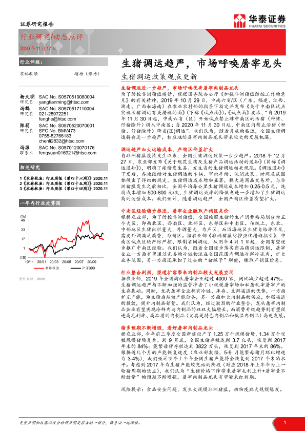 【华泰证券】【20201117】20201117-华泰证券-生猪调运政策观点更新:生猪调运趋严,市场呼唤屠宰龙头-6页
