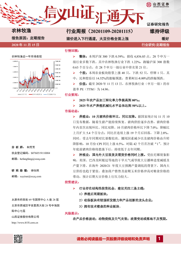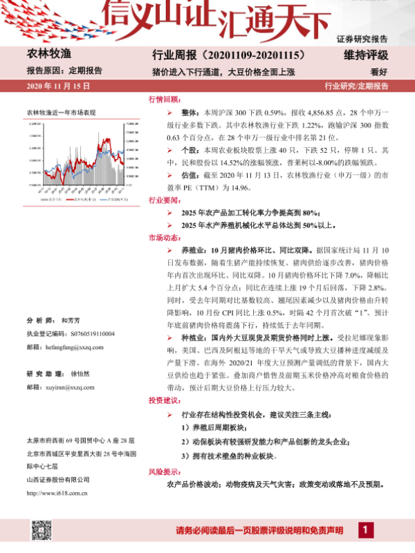 【山西证券】【20201115】20201115-山西证券-农林牧渔行业周报:猪价进入下行通道,大豆价格全面上涨-13页