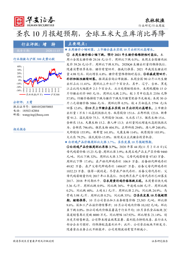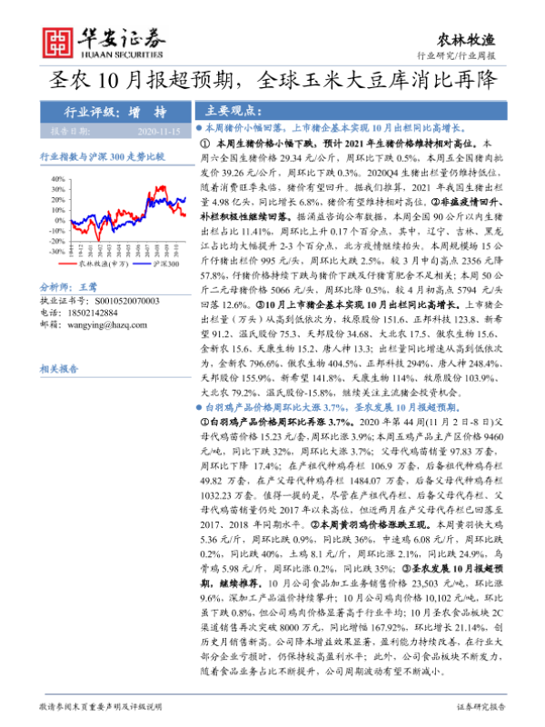 【华安证券】【20201115】20201115-华安证券-农林牧渔行业周报:圣农10月报超预期,全球玉米大豆库消比再降-38页
