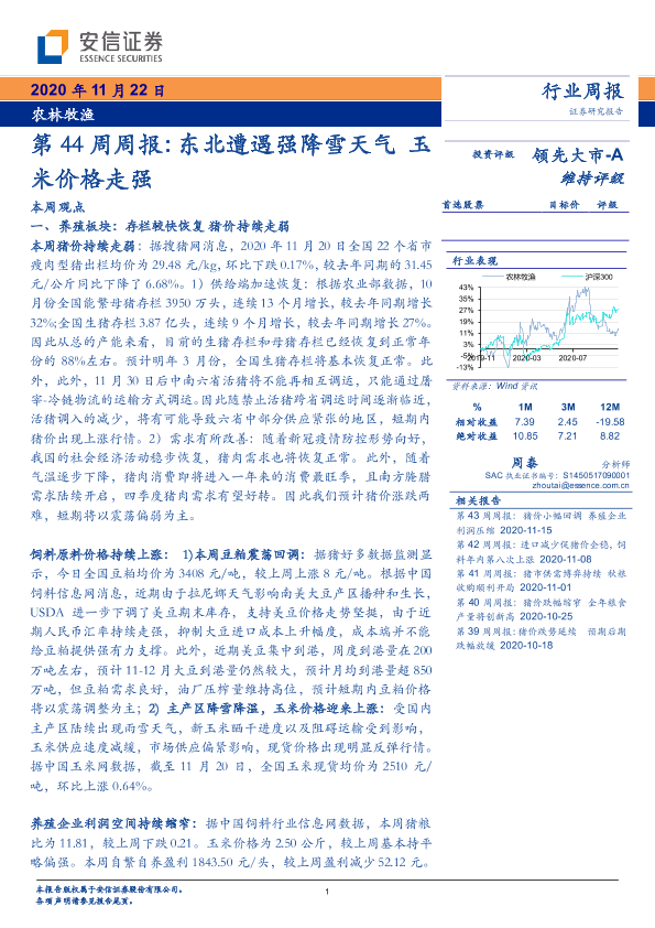 【安信证券】【20201122】农林牧渔第44周周报:东北遭遇强降雪天气 玉米价格走强-19页