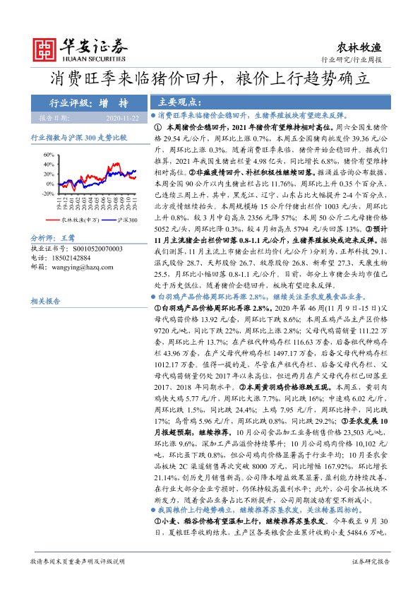 【华安证券】【20201122】20201122-华安证券-农林牧渔行业周报:消费旺季来临猪价回升,粮价上行趋势确立-32页