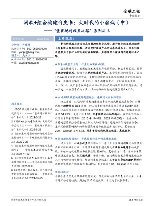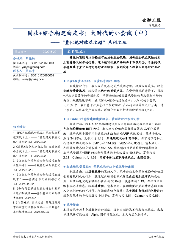 【华安证券】【20220529】“量化绝对收益之路”系列之三:固收+组合构建白皮书,大时代的小尝试(中)-39页