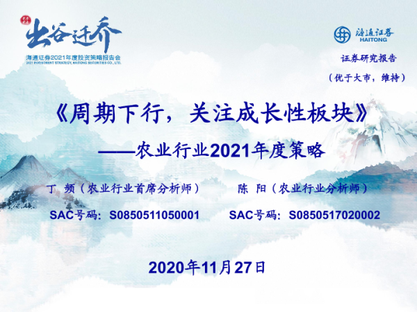【海通证券】【20201127】农业行业2021年度策略:周期下行,关注成长性板块-16页