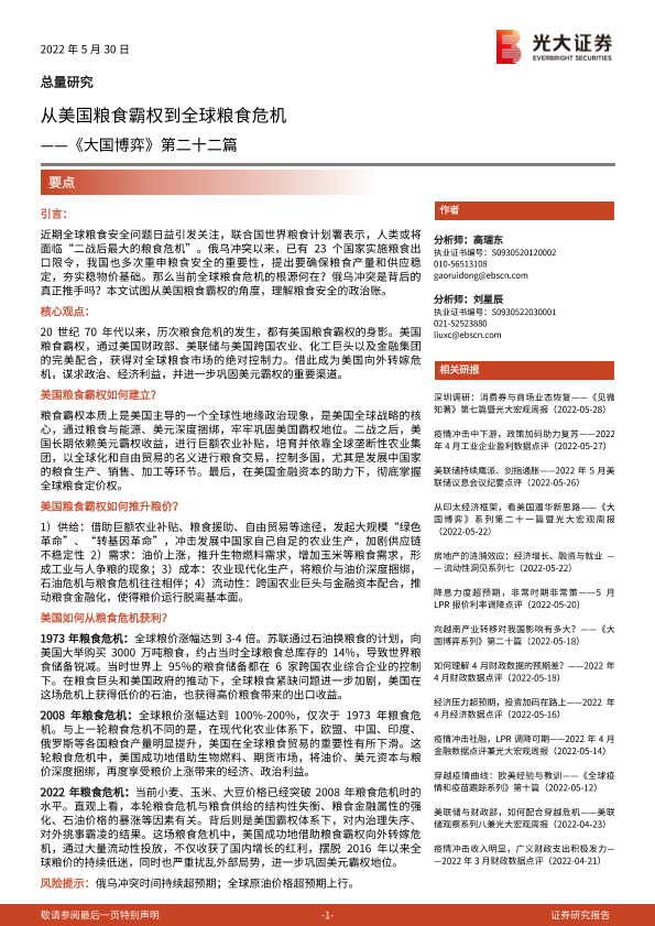 【光大证券】【20220530】从美国粮食霸权到全球粮食危机-29页