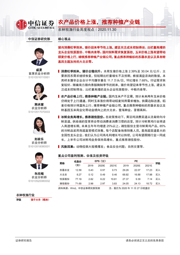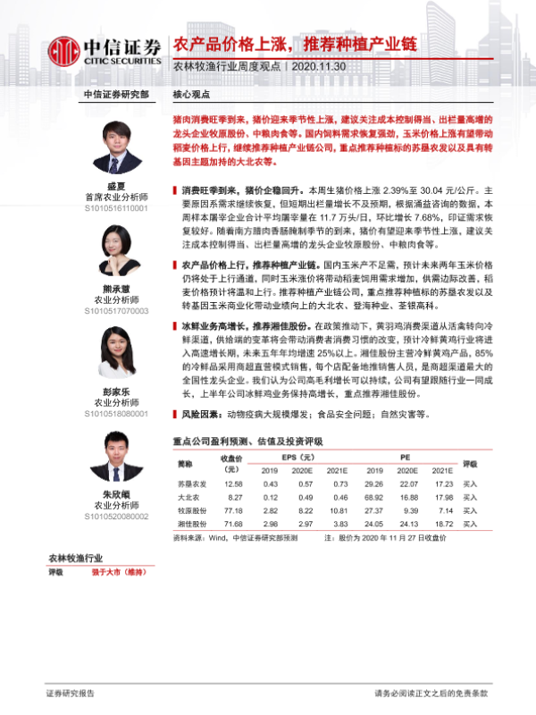 【中信证券】【20201130】20201130-中信证券-农林牧渔行业周度观点:农产品价格上涨,推荐种植产业链-8页