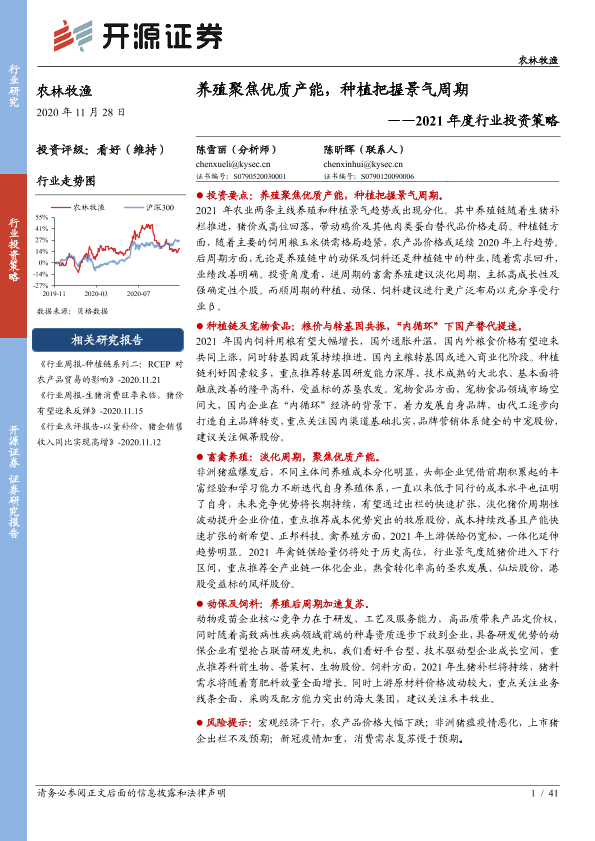 【开源证券】【20201128】2021年度行业投资策略:养殖聚焦优质产能,种植把握景气周期-41页