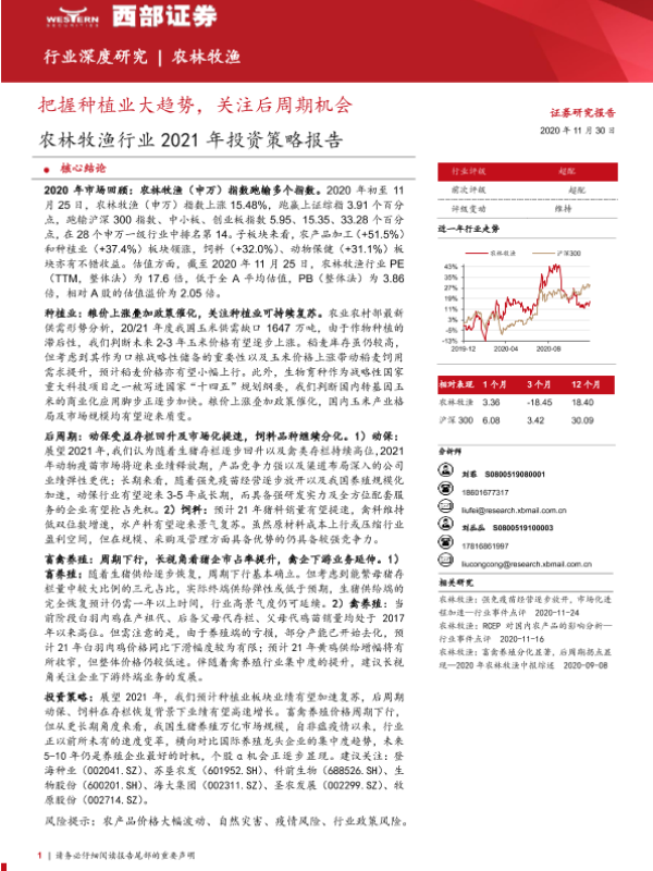 【西部证券】【20201130】20201130-西部证券-农林牧渔行业2021年投资策略报告:把握种植业大趋势,关注后周期机会-32页