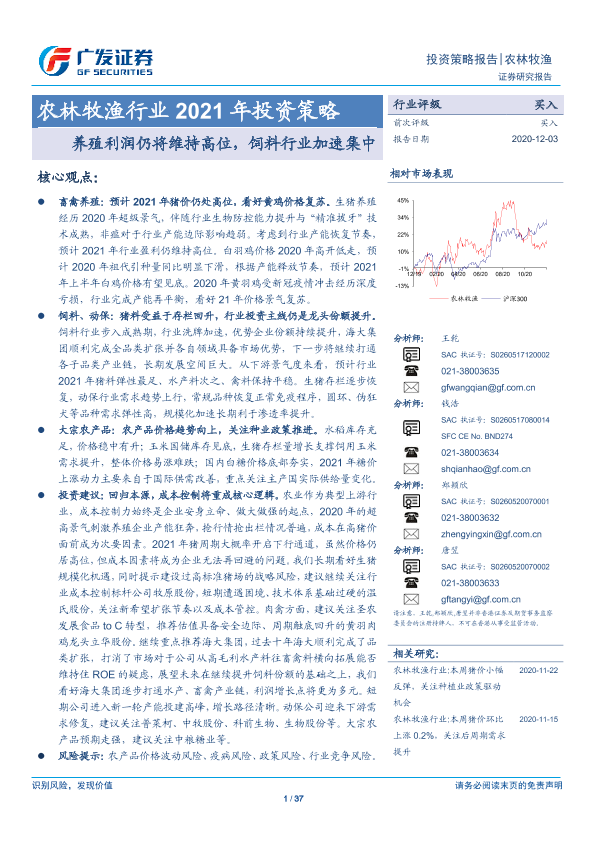 【广发证券】【20201203】农林牧渔行业2021年投资策略:养殖利润仍将维持高位,饲料行业加速集中-37页