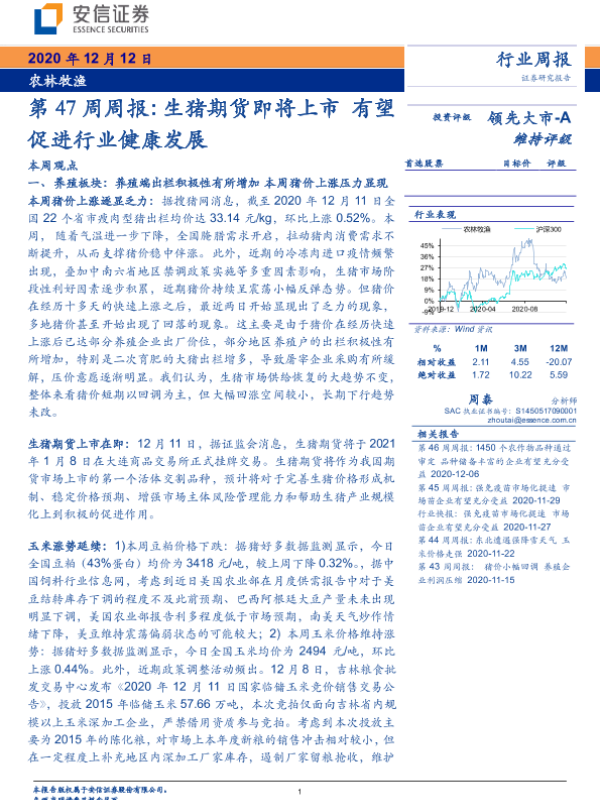 【安信证券】【20201212】20201212-安信证券-农林牧渔第47周周报:生猪期货即将上市 有望促进行业健康发展-21页