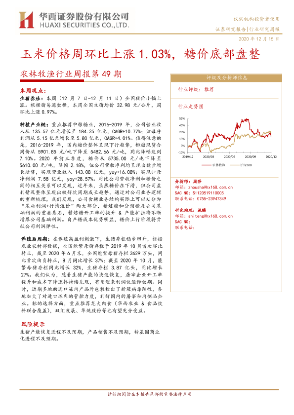 【华西证券】【20201215】20201215-华西证券-农林牧渔行业周报第49期:玉米价格周环比上涨1.03%,糖价底部盘整-21页