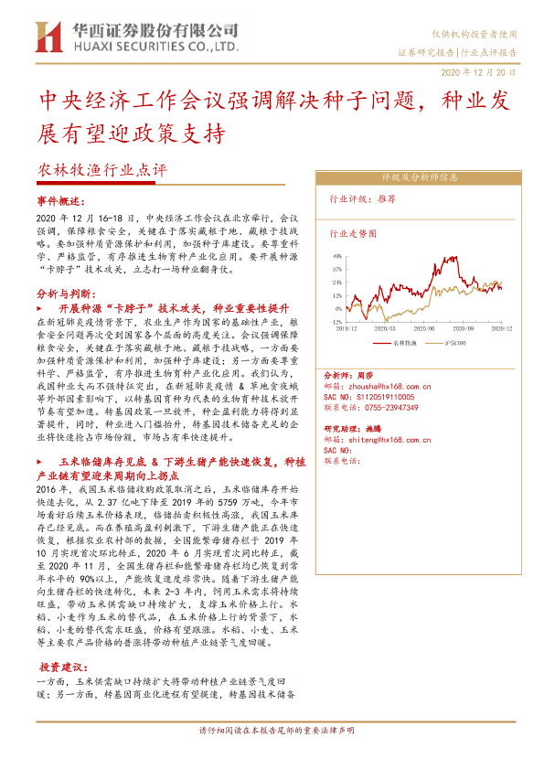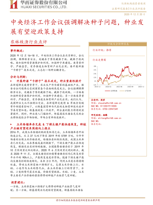 【华西证券】【20201220】20201220-华西证券-农林牧渔行业点评:中央经济工作会议强调解决种子问题,种业发展有望迎政策支持-4页