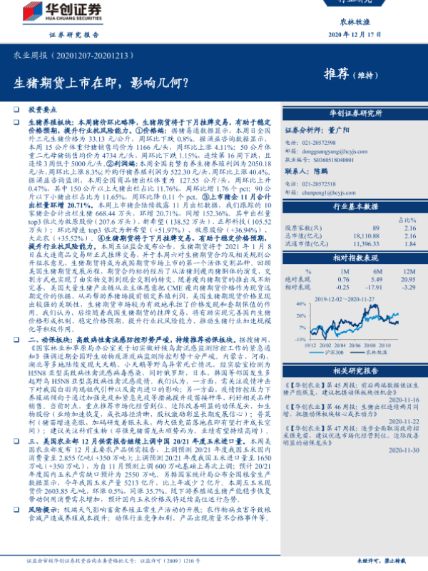 【华创证券】【20201217】20201217-华创证券-农林牧渔农业周报:生猪期货上市在即,影响几何?-34页