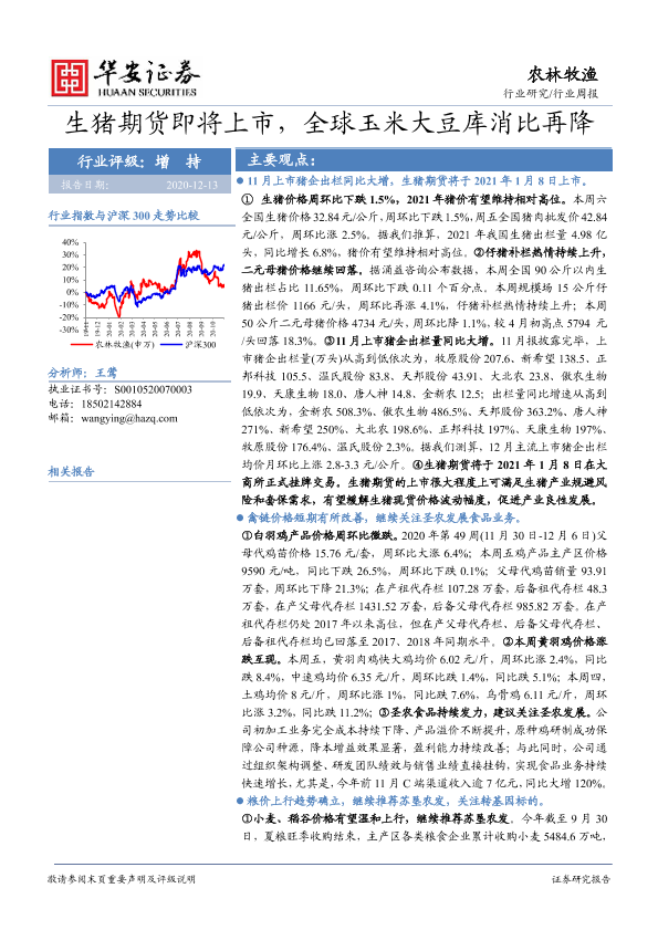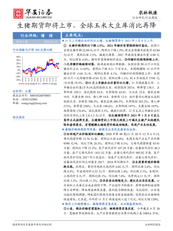 【华安证券】【20201213】20201213-华安证券-农林牧渔行业周报:生猪期货即将上市,全球玉米大豆库消比再降-41页