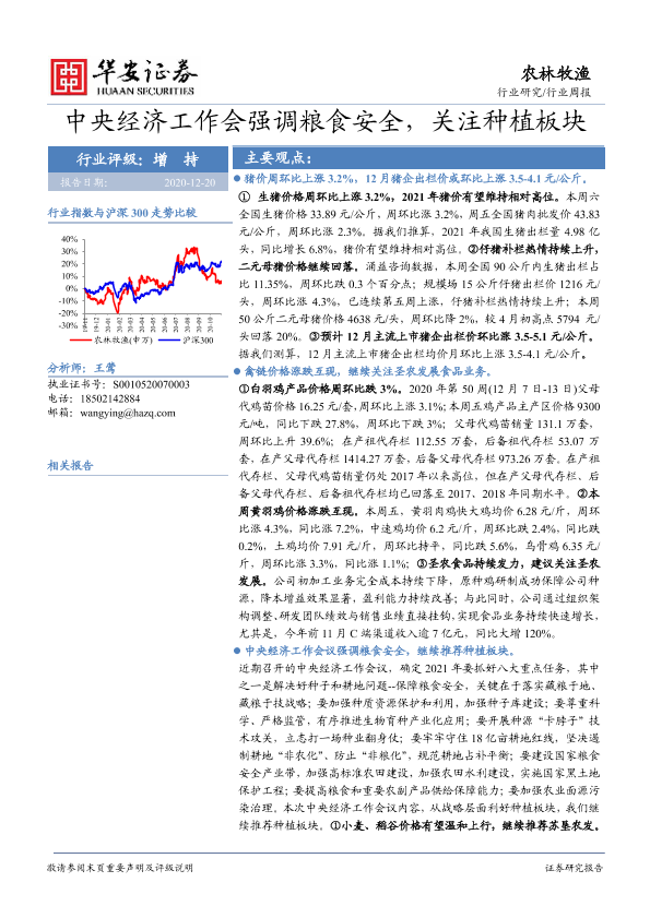 【华安证券】【20201220】20201220-华安证券-农林牧渔行业周报:中央经济工作会强调粮食安全,关注种植板块-39页