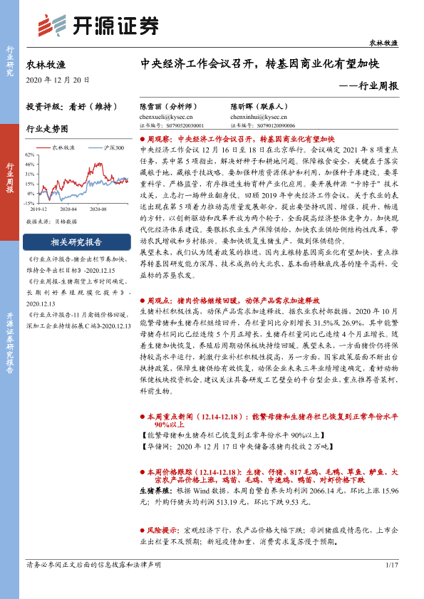 【开源证券】【20201220】农林牧渔行业周报:中央经济工作会议召开,转基因商业化有望加快-17页