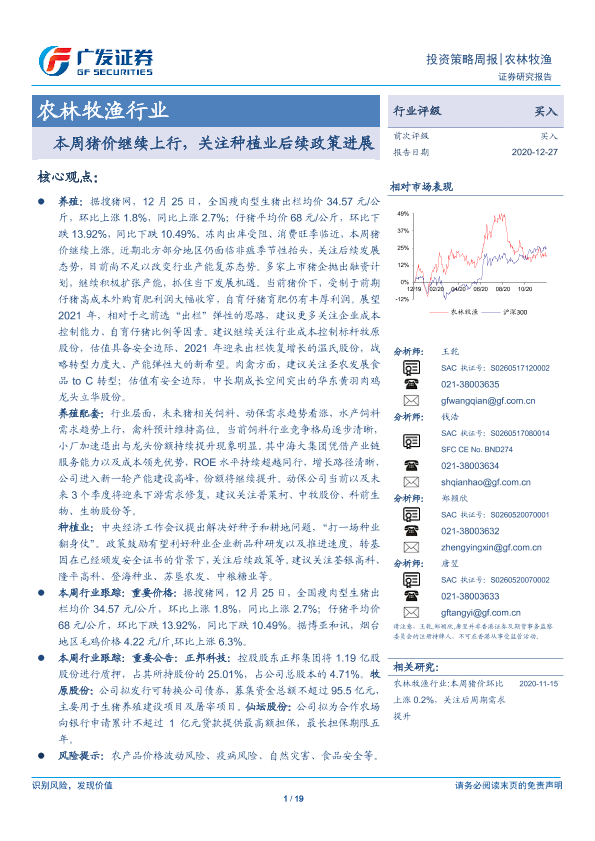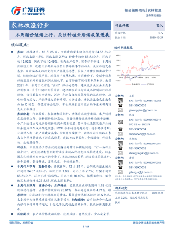 【广发证券】【20201227】20201227-广发证券-农林牧渔行业:本周猪价继续上行,关注种植业后续政策进展-19页