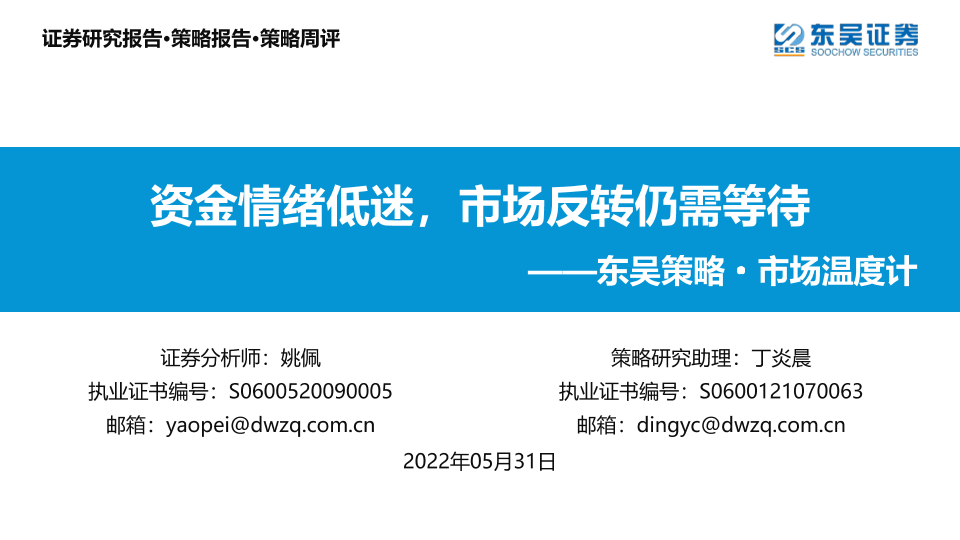 【东吴证券】【20220531】东吴策略·市场温度计:资金情绪低迷,市场反转仍需等待-26页