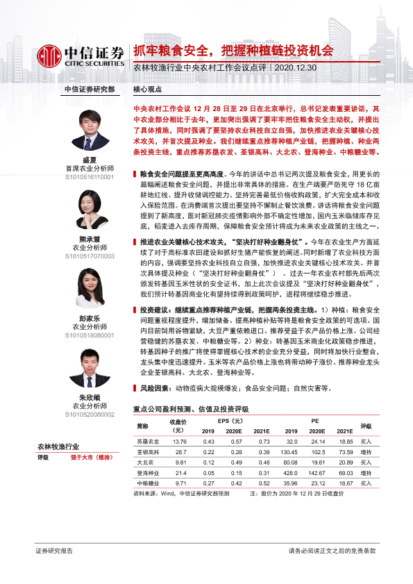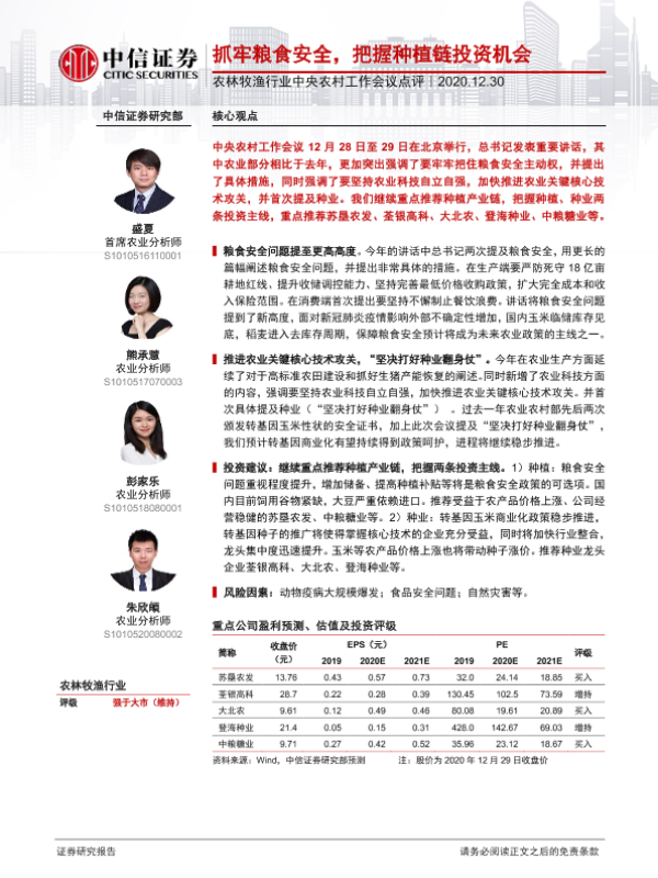 【中信证券】【20201230】农林牧渔行业中央农村工作会议点评:抓牢粮食安全,把握种植链投资机会-3页