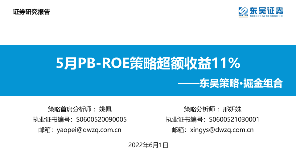 【东吴证券】【20220601】东吴策略·掘金组合:5月PB_ROE策略超额收益11%-32页