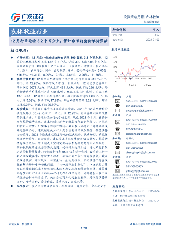 【广发证券】【20210103】农林牧渔行业:12月行业跑输3.2个百分点,预计春节前猪价维持强势-19页