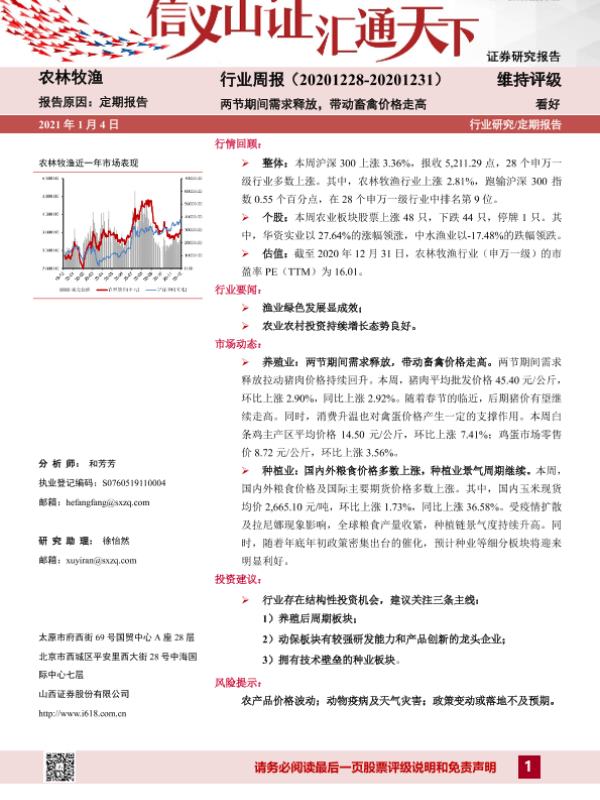 【山西证券】【20210104】20210104-山西证券-农林牧渔行业周报:两节期间需求释放,带动畜禽价格走高-12页