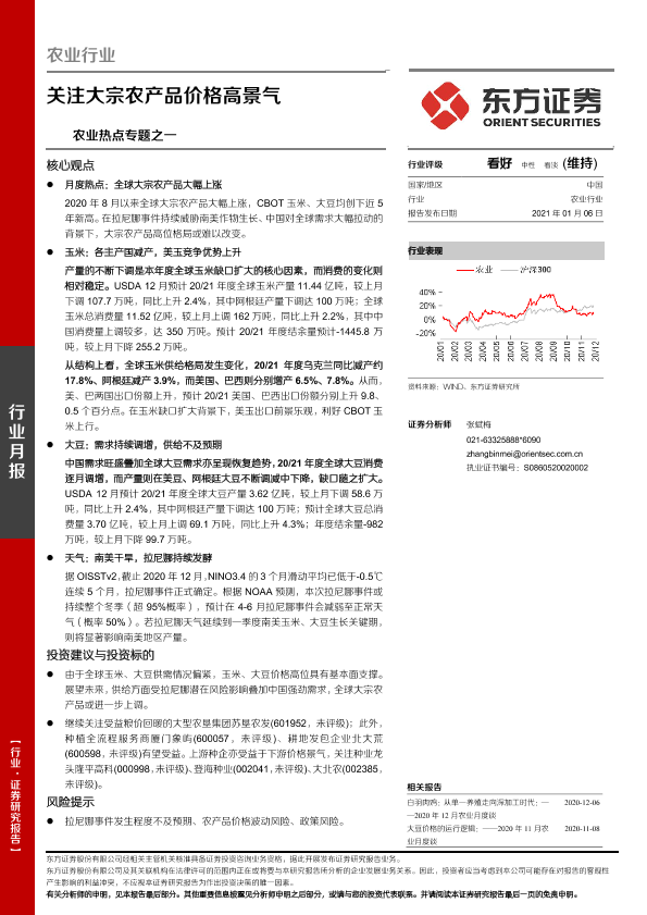 【东方证券】【20210106】农业热点专题之一:关注大宗农产品价格高景气-14页