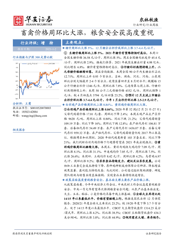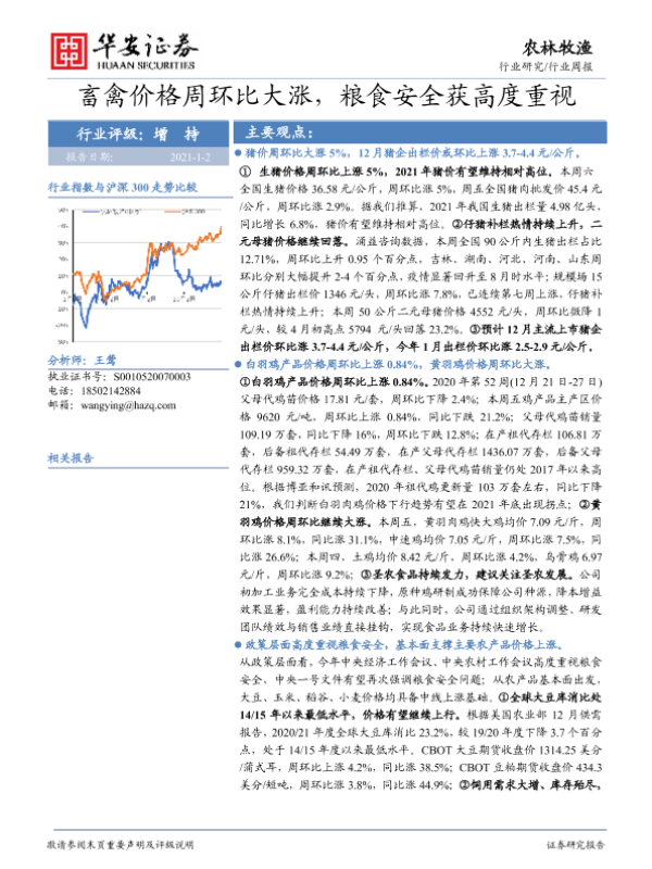 【华安证券】【20210102】20210102-华安证券-农林牧渔行业周报:畜禽价格周环比大涨,粮食安全获高度重视-42页