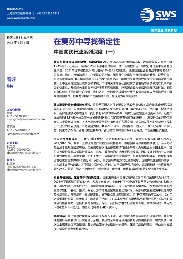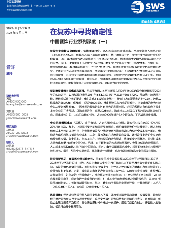 【申万宏源】【20220601】中国餐饮行业系列深度(一):在复苏中寻找确定性-33页