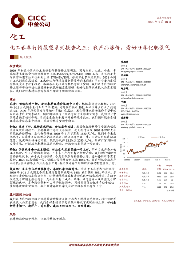 【中金公司】【20210118】化工春季行情展望系列报告之三:农产品涨价,看好旺季化肥景气-20页
