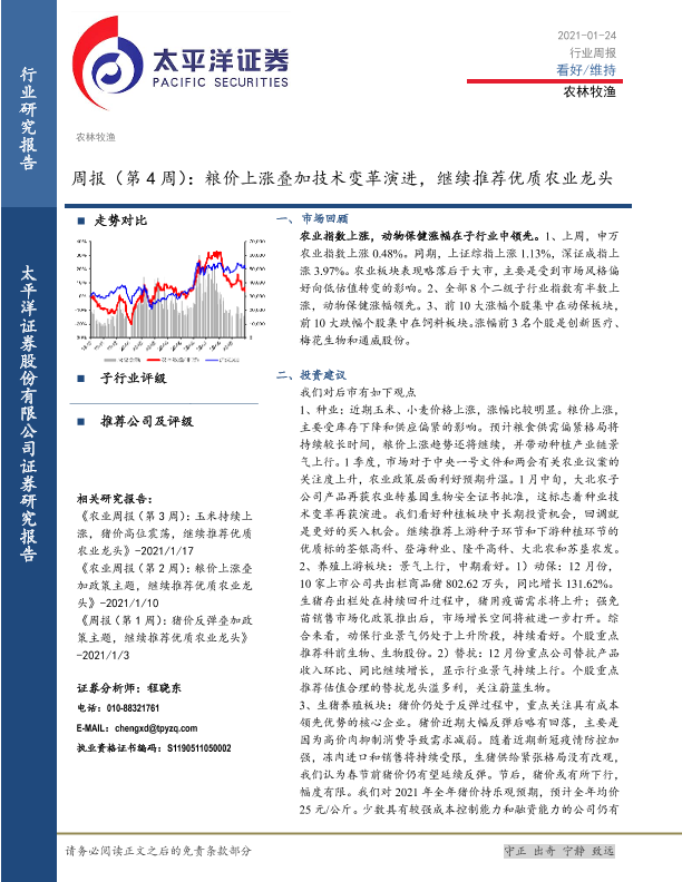 【太平洋证券】【20210124】20210124-太平洋-农林牧渔周报(第4周):粮价上涨叠加技术变革演进,继续推荐优质农业龙头-16页