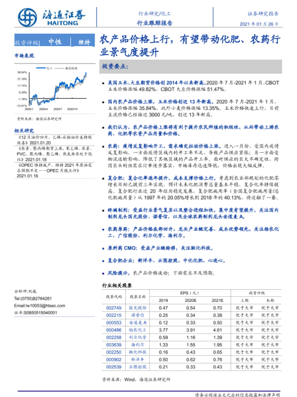 【海通证券】【20210126】20210126-海通证券-化工行业跟踪报告:农产品价格上行,有望带动化肥、农药行业景气度提升-9页