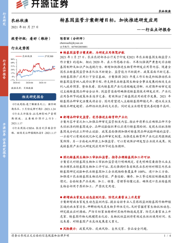 【开源证券】【20210127】农林牧渔行业点评报告:转基因监管方案新增目标,加快推进研发应用-4页