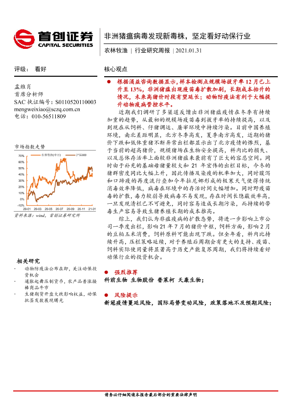 【首创证券】【20210131】20210131-首创证券-农林牧渔行业研究周报:非洲猪瘟病毒发现新毒株,坚定看好动保行业-23页