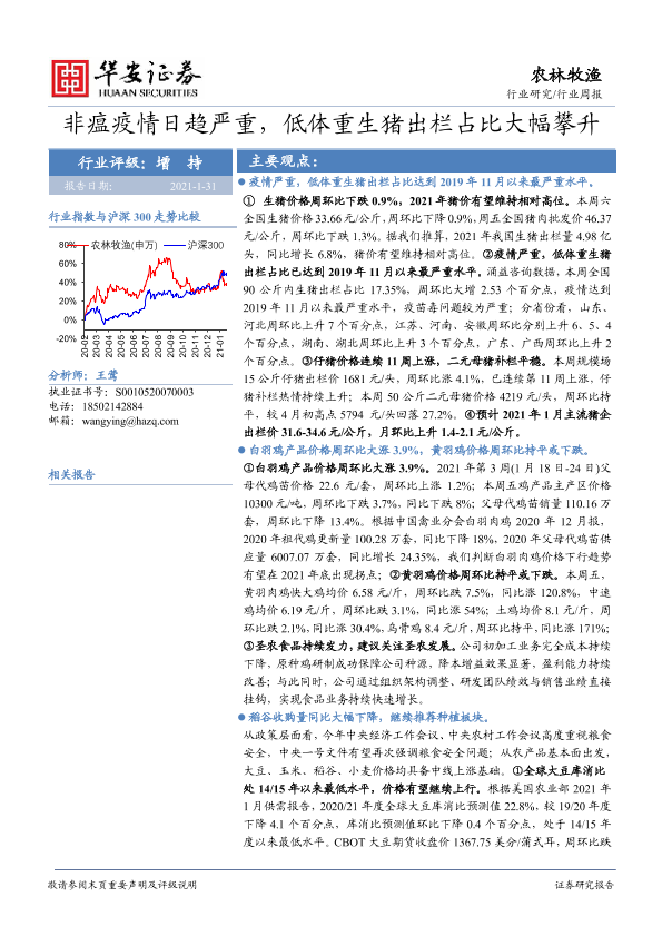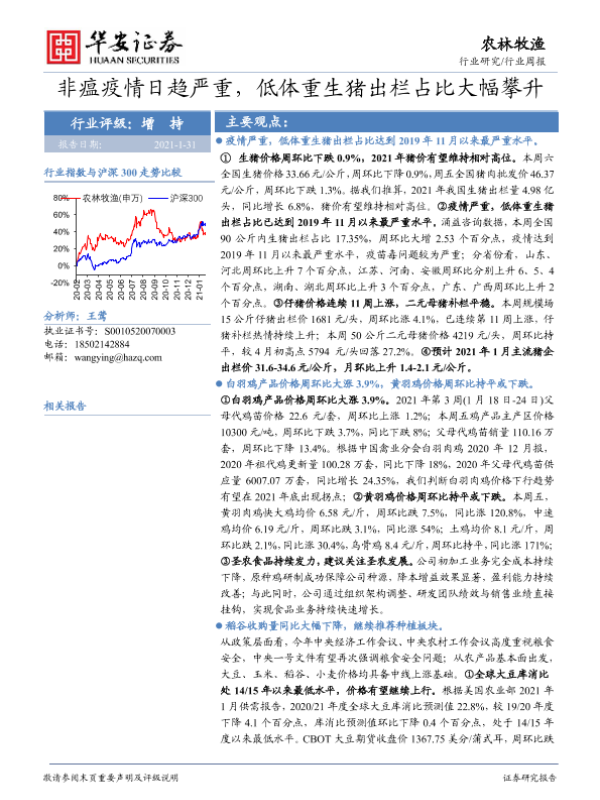 【华安证券】【20210131】20210131-华安证券-农林牧渔行业周报:非瘟疫情日趋严重,低体重生猪出栏占比大幅攀升-56页