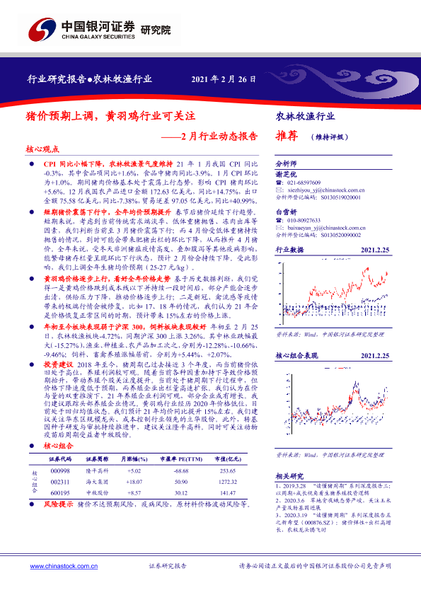【银河证券】【20210226】20210226-中国银河-农林牧渔2月行业动态报告:猪价预期上调,黄羽鸡行业可关注-18页