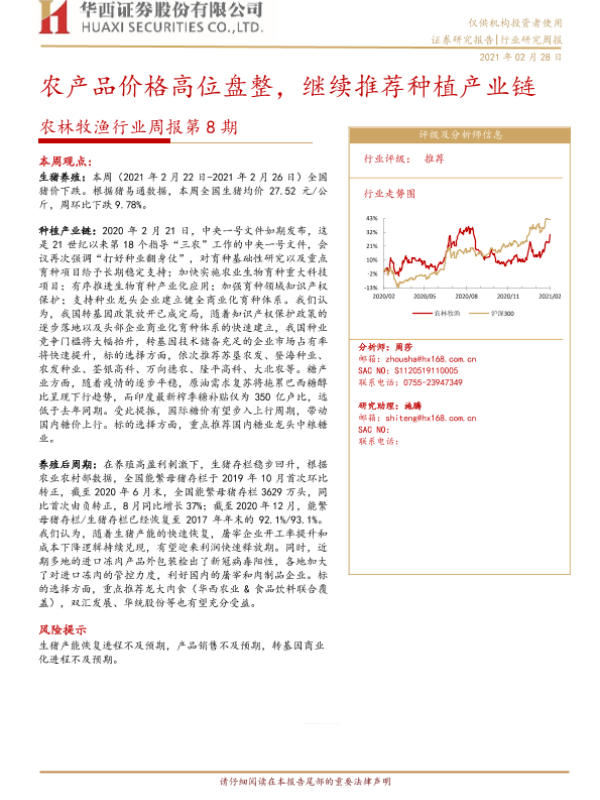 【华西证券】【20210228】农林牧渔行业周报第8期:农产品价格高位盘整,继续推荐种植产业链-23页