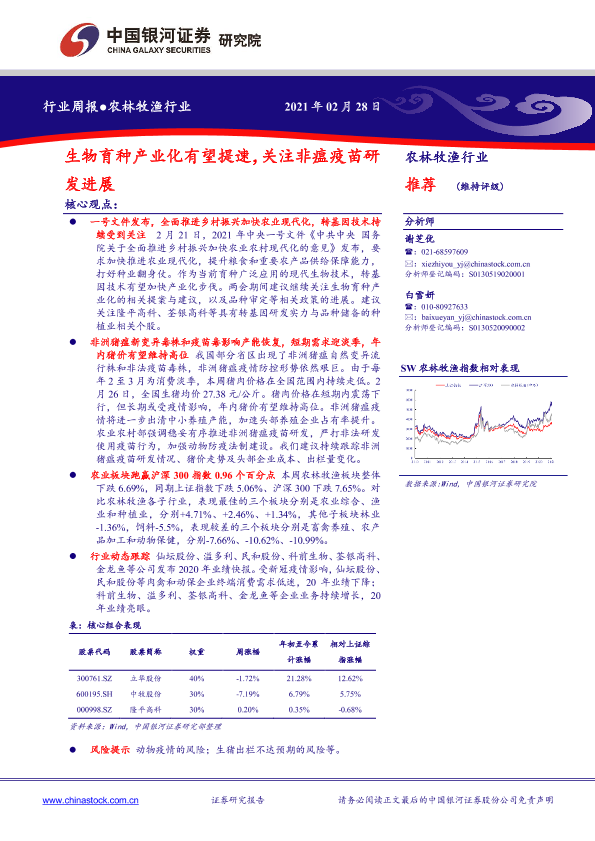 【银河证券】【20210228】20210228-中国银河-农林牧渔行业周报:生物育种产业化有望提速,关注非瘟疫苗研发进展-18页
