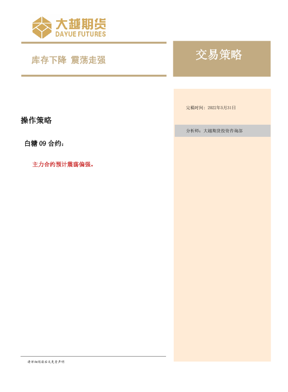 【大越期货】【20220531】交易策略:库存下降,震荡走强-15页