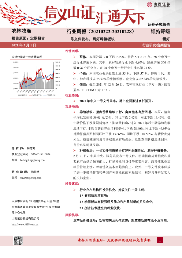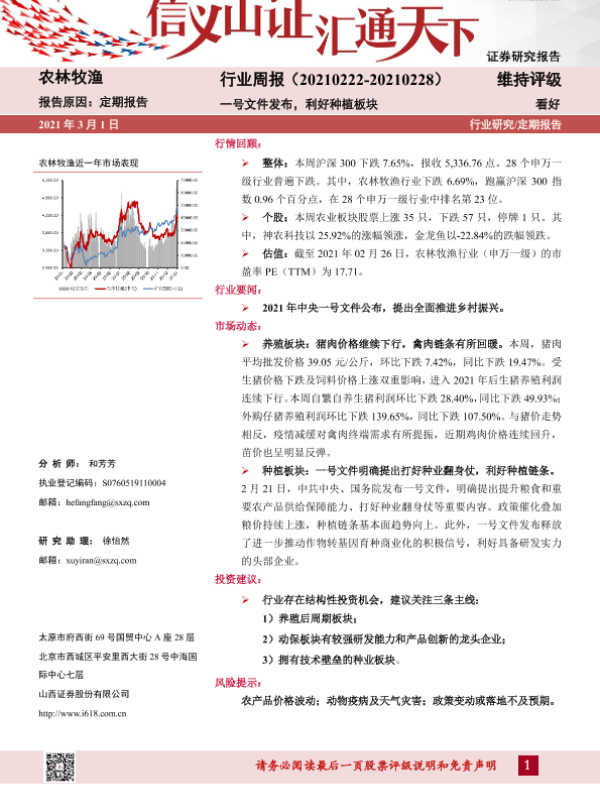 【山西证券】【20210301】20210301-山西证券-农林牧渔行业周报:一号文件发布,利好种植板块-12页