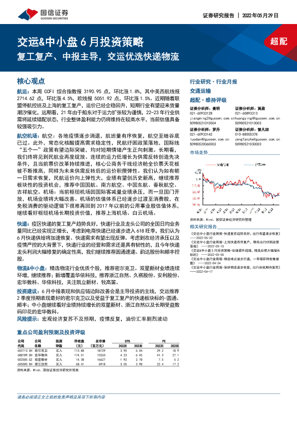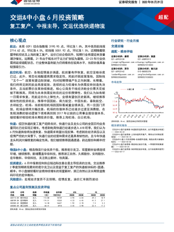 【国信证券】【20220529】交运行业&中小盘6月投资策略:复工复产、中报主导,交运优选快递物流-25页