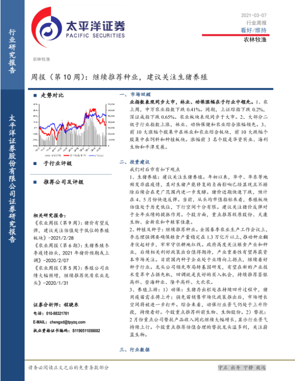【太平洋证券】【20210307】20210307-太平洋-农林牧渔周报(第10周):继续推荐种业,建议关注生猪养殖-15页