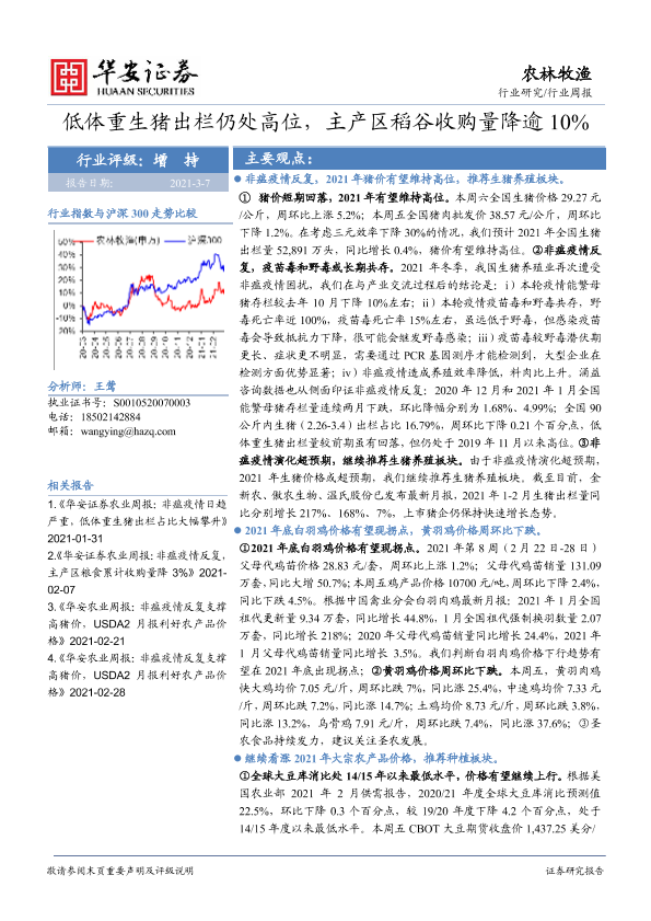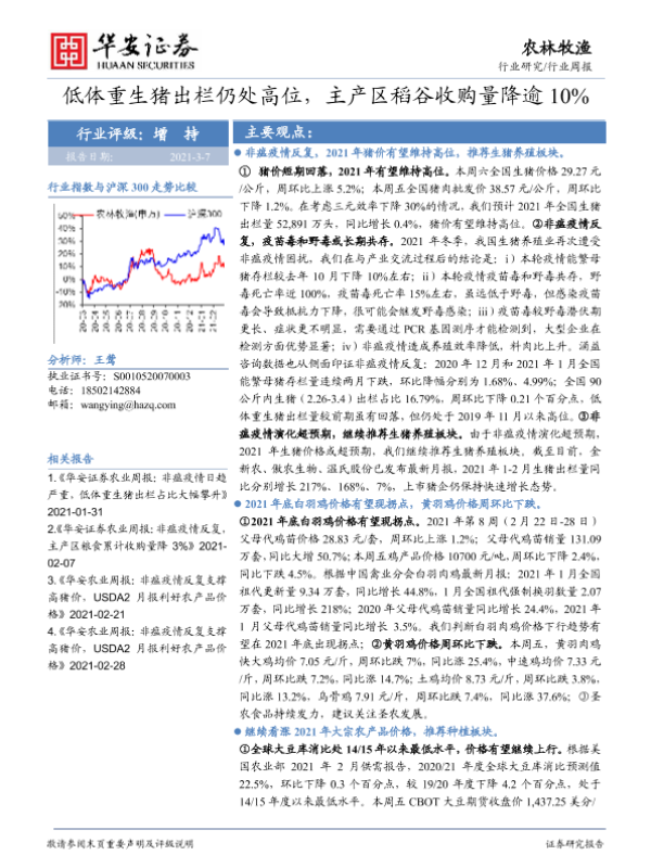 【华安证券】【20210307】20210307-华安证券-农林牧渔行业周报:低体重生猪出栏仍处高位,主产区稻谷收购量降逾10%-42页